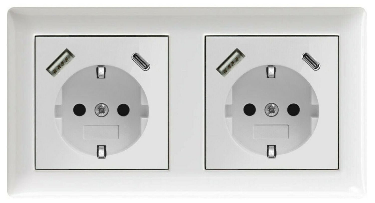 - 230 V Schuko-Doppel-Steckdose mit 2 x USB-A & 2 x USB-C Ladegerät