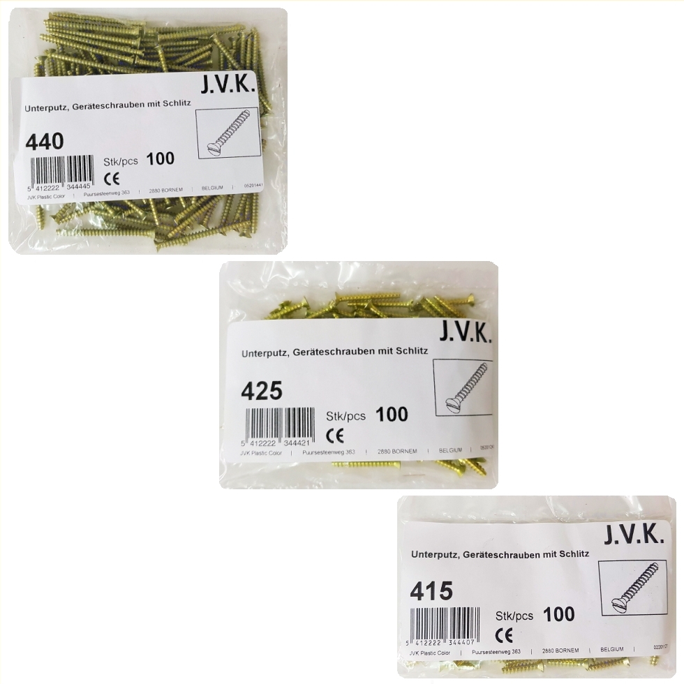 100 x Geräteschraube Schalterdose mit Schlitz 3,2 mm x 15 mm / 25 mm / 40 mm