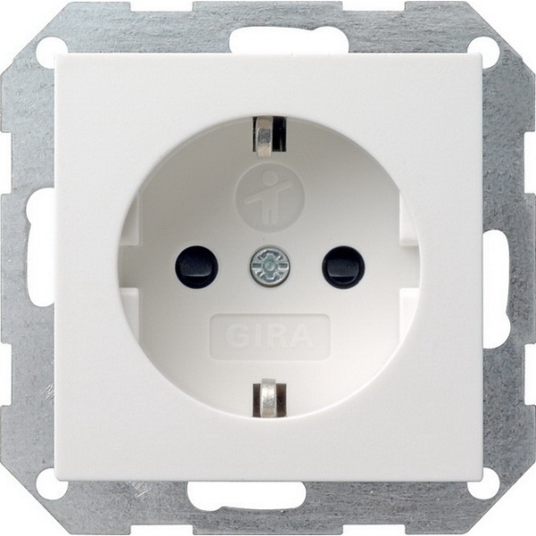 GIRA System 55, SCHUKO-Steckdose 16 A 250 V~ mit integriertem erhöhtem Berührungsschutz (Shutter) und Symbol Steckklemmen, Reiweiß glänzend (045303)