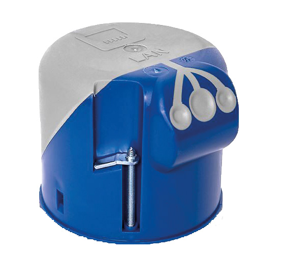 3-seitig anreihbar durch versetzte Anordnung der Brandschutzschrauben, Garantiert winddicht, 3-fache Leitungseinführung, DiN EN 50173 konform, Ø 68mm, Tiefe 60 mm, IP30, CE, flammwidrig 850 °C,